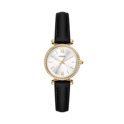 Carlie Mini Three Hand Black Leather Watch Es4700 Fossil